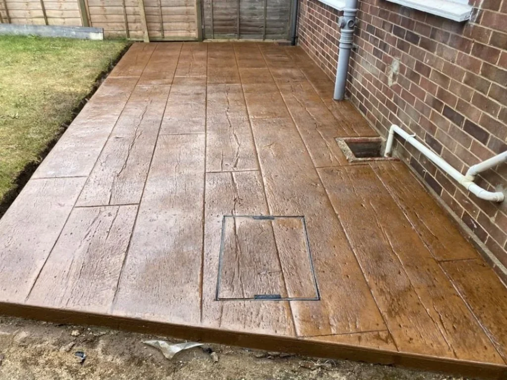 While stamped concrete may have a higher upfront cost than basic wood, its long lifespan makes it a strong investment. A well-installed stamped concrete surface can last 25–40 years or more, compared to 10–15 years for most wood decks.